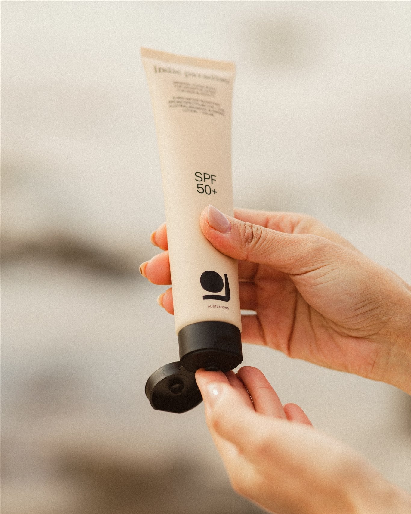 Our mineral SPF 50+ melts in like a dream. No white cast, no greasy finish, no weird smells — just calm, clean protection that holds through surf, sweat, and spontaneous road trips. Designed and made in Australia, it’s water resistant for 4 hours and gentle enough for everyday use.